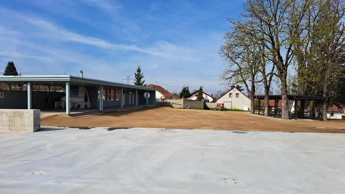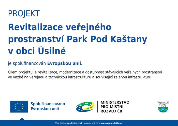 Vážení spoluobčané, jak jste jistě zaznamenali, v letošním roce jsme realizovali další fázi úpravy veřejného prostranství Altán pod Kaštany, které slouží jako prostor pro pořádání společenských a kulturních akcí v obci. Díky realizaci projektu došlo k vybudování betonové desky, která bude sloužit jako nová plocha pro umístění velkokapacitního stanu, který tak budeme moci používat za jakéhokoliv počasí. Zároveň došlo k úpravě okolní travnaté plochy, která by tak nyní měla lépe odolávat nepříznivému počasí a lépe sloužit pro všechny aktivity, které se na tomto prostranství budou konat. Součástí stavby je navíc retenční nádrž pro zachytávání dešťové vody, která nám umožní efektivněji o upravenou zatravněnou plochu a nově vysazené stromy lépe pečovat. Realizace projektu byla podpořena částkou 2 850 000,- Kč prostřednictvím Integrovaného regionálního operačního programu z prostředků Evropské unie.
