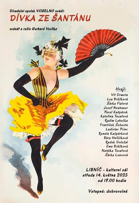 Úvod > Aktuality > DIVADLO - DÍVKA ZE ŠANTÁNU - LIBNÍČ 14.5.2025 OD 19.00 HOD.